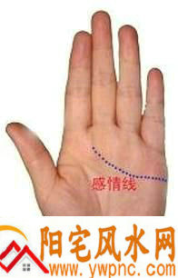 感情线——即天纹或父纹。从小指下掌边起向食指方向走,以走入食指与中指缝为中庸。
