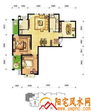 2.大门在震位,属东四宅。从图上看进门有玄关很好,有效的保护了财气不会外流。